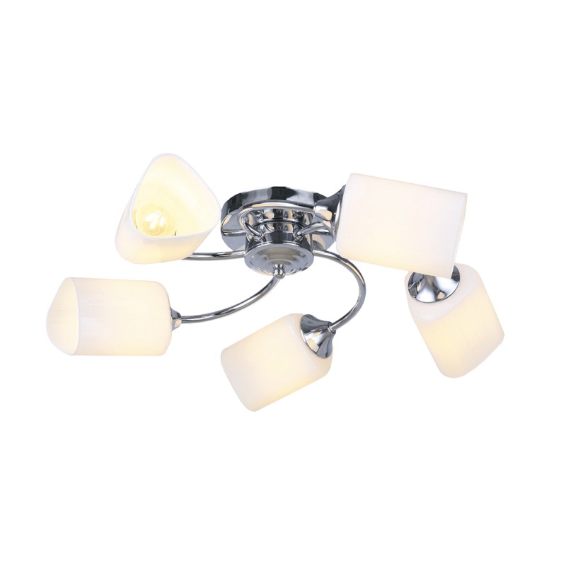 Потолочная люстра серии ANZIO на пять плафонов предназначена для общего освещения. Выполнена в хромированном корпусе с белыми стеклянными плафонами. Стандартный цоколь Е27 позволяет использовать светодиодные лампы и лампы накаливания до 60 Вт. Надёжное металлическое основание и классические плафоны из стекла обеспечат равномерное освещение жилых помещений и комфортную долгую эксплуатацию.