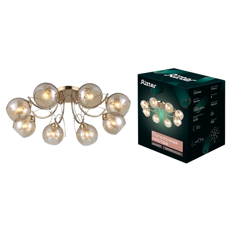 Наименование для 1С | Люстра потолочная, CATANIA, 680х680х200мм, 8хE27, металл, золото, 52543 1, Ritter |