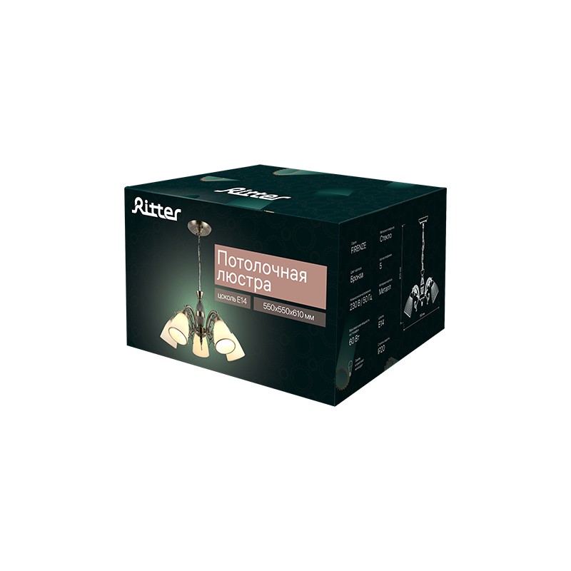 Наименование для 1С | Люстра потолочная, FIRENZE, 550х550х610мм, 5хE14, металл, бронза, 52548 6, Ritter |