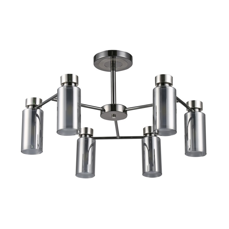 Потолочная люстра серии NOVARA на шесть плафонов предназначена для общего освещения. Выполнена в металлическом корпусе цвета "черный жемчуг" с плафонами в виде стеклянных сосудов. Стандартный цоколь Е14 позволяет использовать светодиодные лампы до 15 Вт.