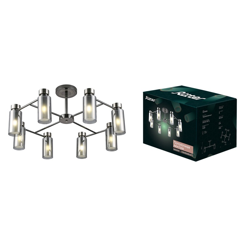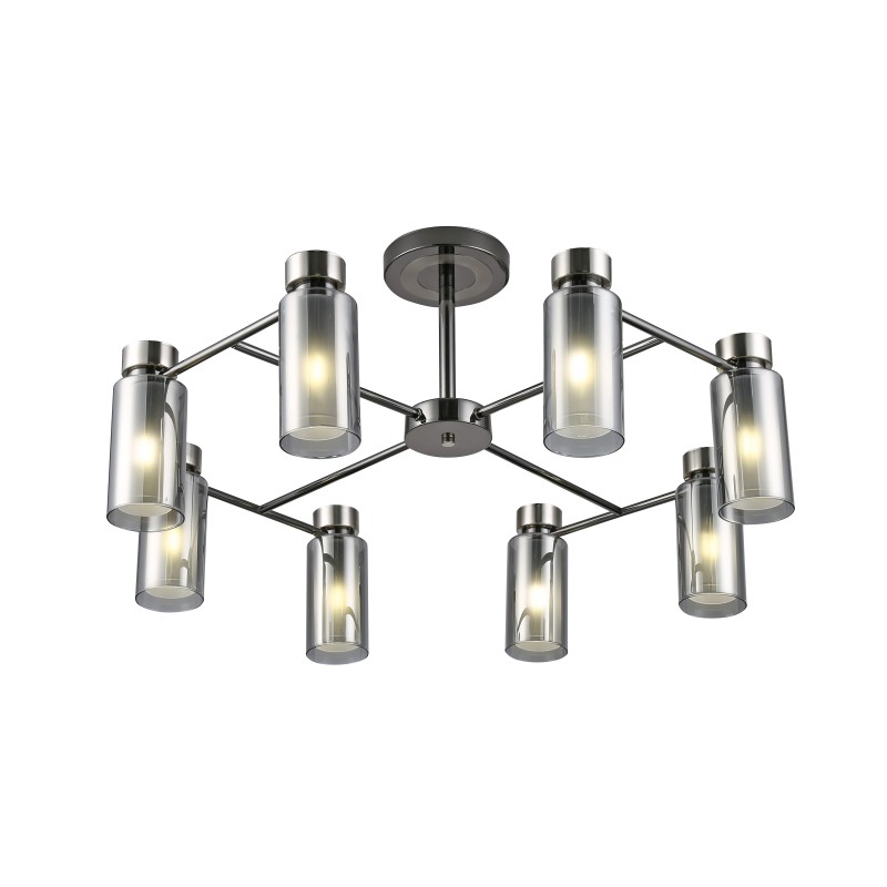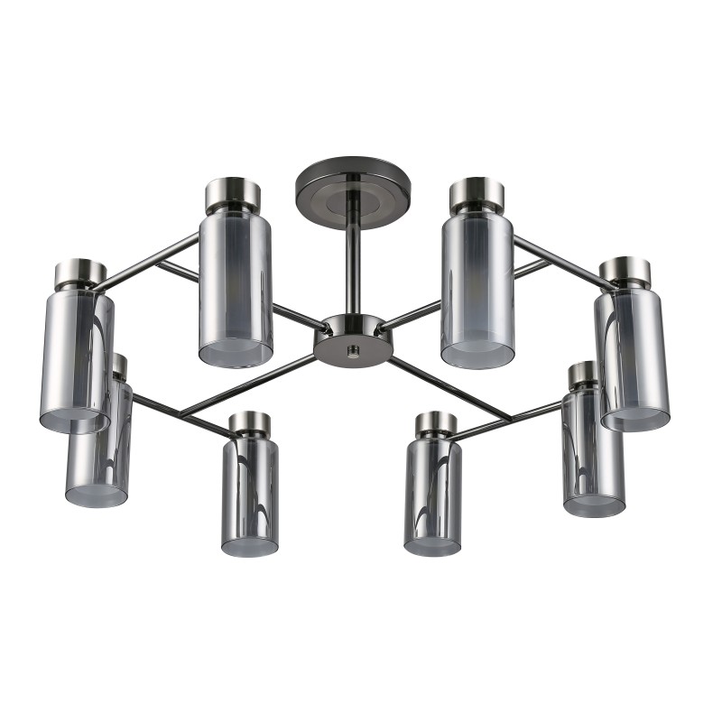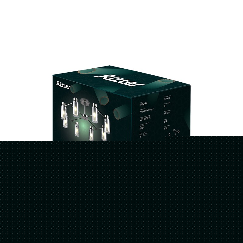 Потолочная люстра серии NOVARA на восемь плафонов предназначена для общего освещения. Выполнена в металлическом корпусе цвета "черный жемчуг" с плафонами в виде стеклянных сосудов. Стандартный цоколь Е14 позволяет использовать светодиодные лампы до 15 Вт.