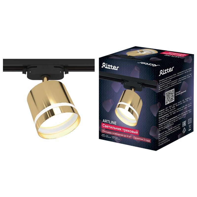 59868 2 Светильник трековый, накладной, ARTLINE, поворотный, цилиндр, 85x80mm, GX53, 230В, алюминий/пластик, 4м², золото, 59868 2, Ritter