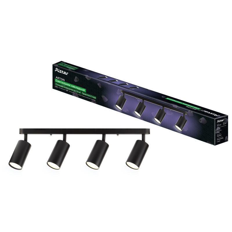 59936 4 Светильник накладной, ARTON, поворотный, цилиндр, 500x55x160мм, 4хGU10, алюминий, черный, 59936 4, Ritter, 4008297599364