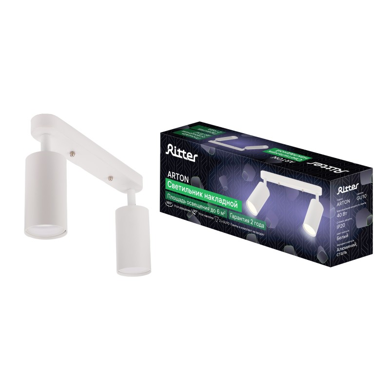 59989 0 Светильник накладной, ARTON, поворотный, цилиндр, 260x55x160мм, 2хGU10, алюминий, белый, 59989 0, Ritter, 4008297599890