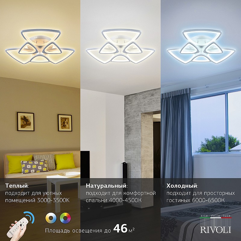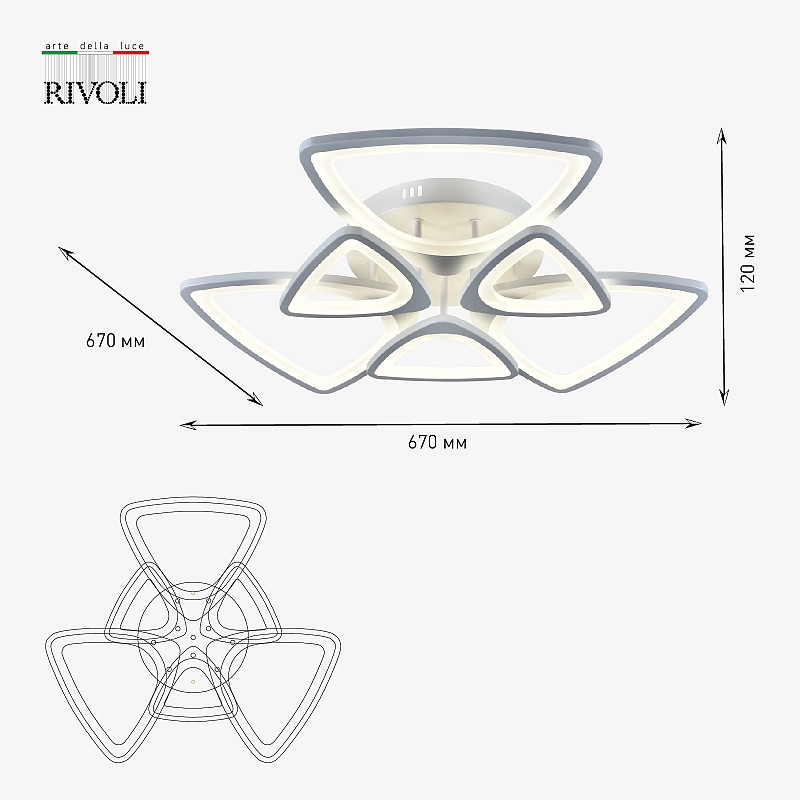 <p>Rivoli Heiwig (арт. 6076-106) стильный и функциональный потолочный LED-светильник от итальянских дизайнеров. Вы оцените многослойный светящийся корпус этой светодиодной люстры и множество режимов работы. Данным светодиодным светильником можно управлять дистанционно при помощи пульта (в комплекте!) или приложения на смартфоне (легко скачать!).</p><p>Люстра светодиодная потолочная Rivoli Heiwig имеет возможность диммирования яркости. Плавная регулировка свечения этой красивой люстры комфортна для глаз. Освещение доступно в широком диапазоне цветовых температур: 3000 6000 К. Теплый уютный свет, нейтральный дневной, холодный белый управляйте люстрой как вам удобно и как вам нравится!</p><p>Размеры люстры на потолок Heiwig оптимальны для современной квартиры - 670*670*120 мм. Прекрасным решением станет эта модель в качестве потолочного светильника в студию. Такая LED-люстра делает пространство функциональным в комнате можно с комфортом отдыхать, раб