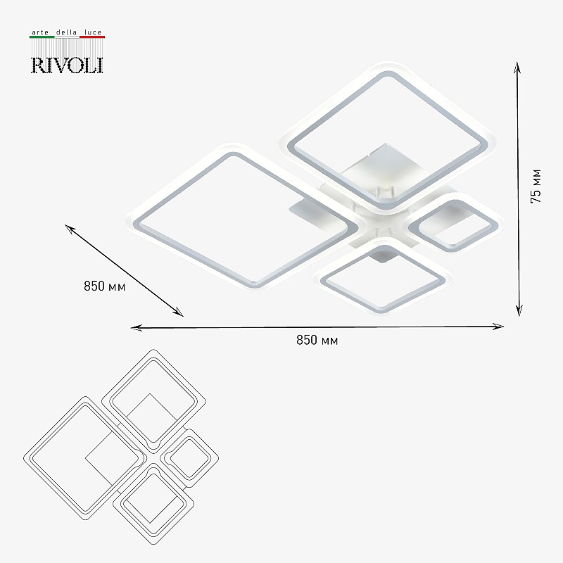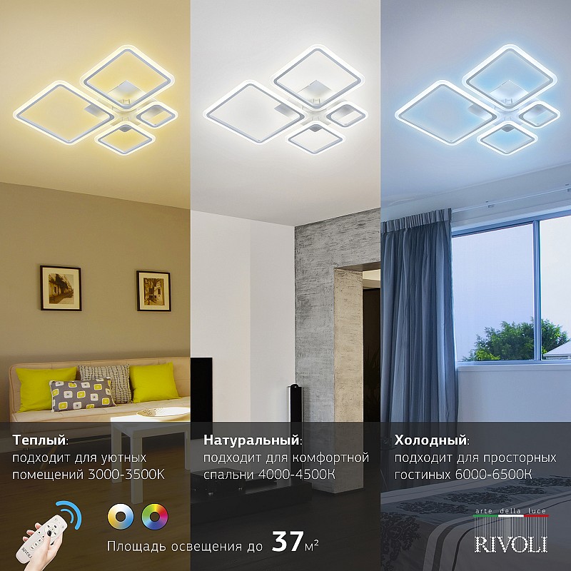 <p>Rivoli Lucia (арт. 6091-105) эффектный светодиодный светильник потолочный с дизайном, комбинирующим светящиеся квадраты разного размера. Пульт дистанционного управления поставляется в комплекте с этой современной люстрой. Управлять освещением на расстоянии вы сможете также при помощи смартфона.</p><p>LED-люстры Lucia работают в разных вариантах цветовой температуры. Один светодиодный светильник светит и теплым белым, и холодным белым и нейтральным дневным светом. Доступно диммирование яркости люстры на потолок Lucia от итальянского бренда Rivoli.</p><p>Ровный яркий свет светодиодного светильника Lucia создается светодиодами последнего поколения. Световой поток этой современной люстры - 6450 Лм. Спешите купить и преобразить ваш дом! Размеры LED-светильника - 850*850*75 мм.</p>