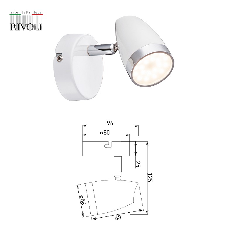 6155-701 Светильник настенно-потолочный спот Rivoli Kelly 6155-701 светодиодный LED 1 х 4 Вт 3200К поворотный, 5055398641347