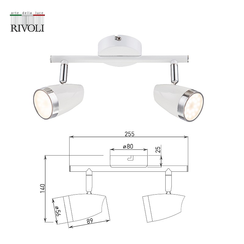 6155-702 Светильник настенно-потолочный спот Rivoli Kelly 6155-702 светодиодный LED 2 х 4 Вт 3200К поворотный, 5055398641361