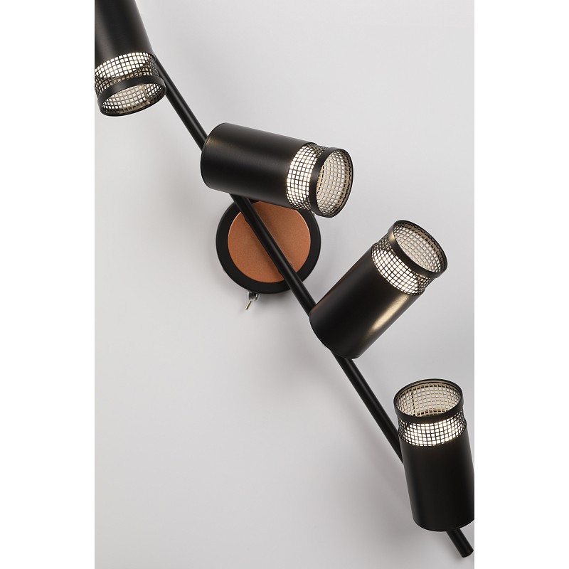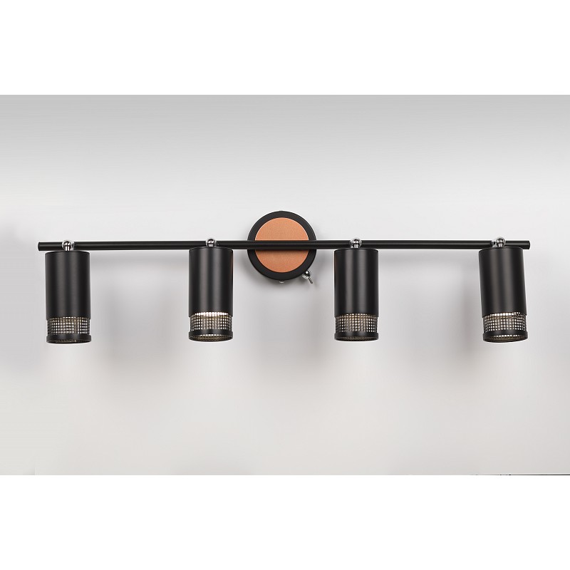 <p>Настенные споты Rivoli Lili (арт. 7020-704) с 4 поворотными плафонами простой и красивый способ разделить пространство на зоны и подсветить интерьерные решения. Решетчатая перфорация металла изюминка этой коллекции, дизайн которой создан в Италии.</p><p>Rivoli Lili это красивые поворотные споты с разным количеством плафонов: от 1 до 4. Посмотрите их фото, введя в поиск: 7020-703, 7020-702, 7020-701. Купить такие настенно-потолочные светильники значит создать в доме хорошую атмосферу и собрать восторженные отзывы гостей. Вы оцените трендовые цвета корпуса (черный, медь) и стойкое гальваническое покрытие.</p><p>Отличным решением такие накладные споты станут для гостиной, кухни, студии, детской, прихожей, загородного дома, кабинеты. Универсальные настенные светильники Lili выбирают для интерьеров в стиле кантри, лофт, ретро, скандинавский, классический, минималистичный. Миниатюрный выключатель расположен на корпусе.</p><p>Установите в споты Lili 4 лампы GU10 мощностью 50 Вт, чтобы осветить площадь 12 м².</p>