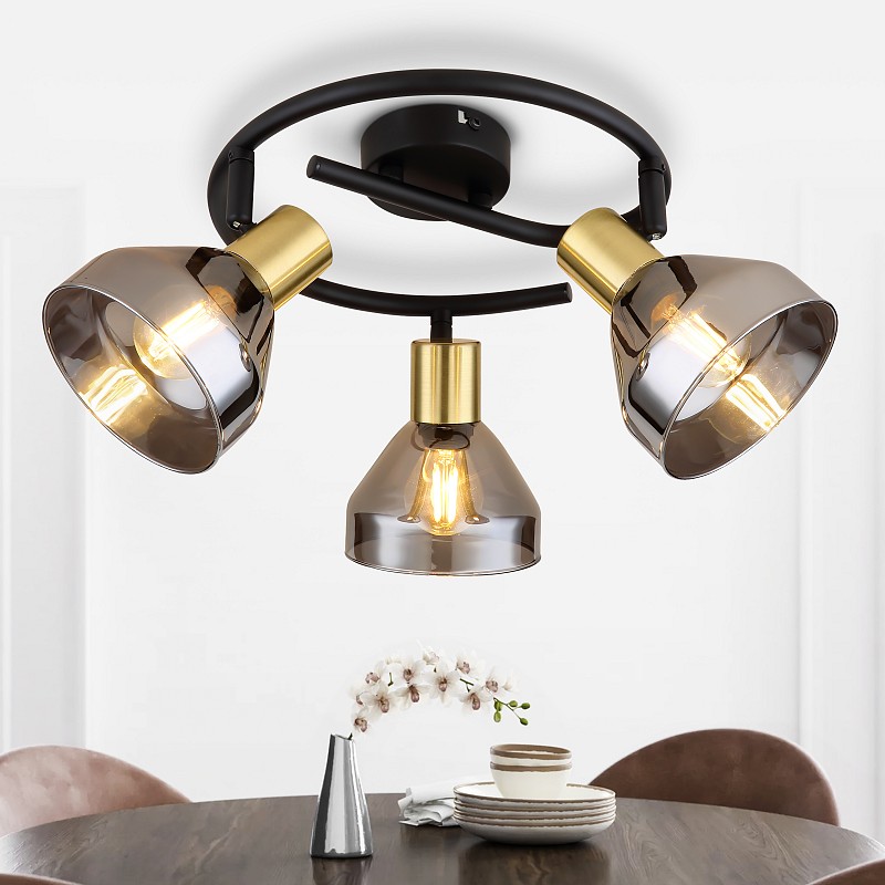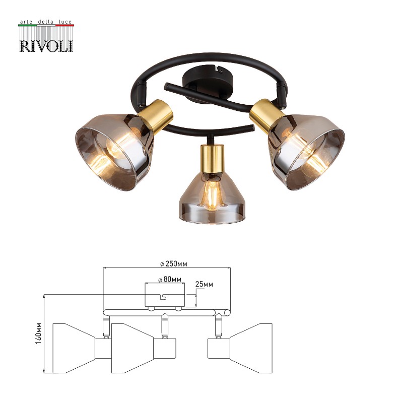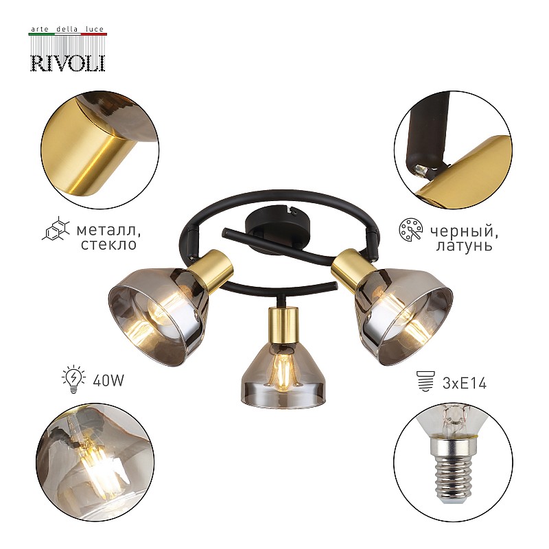 <p>Rivoli Kinge (арт. 7036-733) - настенно-потолочные светильники с 3 поворотными плафонами и закругленной арматурой. Споты изготовлены из прочного металла и декоративного стекла с красивой тонировкой. Люстра на потолок Kinge освещает 9 м² и представляет собой спот накладной. Вы можете выбирать направление света каждой лампы, что очень удобно для разделения пространства на зоны. Споты потолочные Rivoli Kinge созданы итальянскими дизайнерами.</p><p>Если использовать Rivoli Kinge в качестве спота настенного, можно получить отличную дополнительную подсветку для обеденного или рабочего стола, над кроватью, в зоне прихожей или гардеробной. Универсальность - преимущество данной модели. Рекомендованные лампы - Е14 мощностью 40 Вт.</p><p>Коллекцию Rivoli Kinge дополняют споты на 3 лампы (арт. 7036-703), 2 лампы (арт. 53996011), бра на 1 лампу (арт. 53996006). Купить дизайнерские итальянские светильники в стиле лофт вы можете по доступной цене в России.
