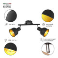 <p>Rivoli Jessica – спот настенно-потолочный с 2 трендовыми металлическими плафонами. Внешняя сторона плафонов имеет черное матовое покрытие, внутренняя - покрытие золотого цвета. Настенно-потолочные светильники Jessica отличаются поворотной конструкцией плафонов, позволяющей индивидуально регулировать направление светового потока каждого плафона.</p>