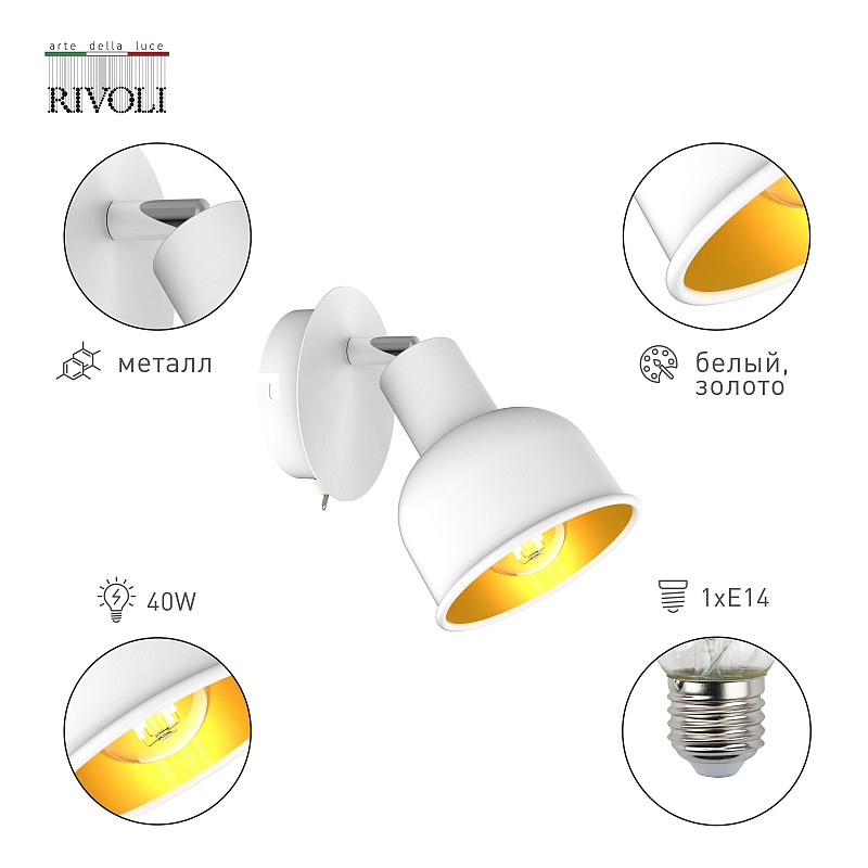 7056-701 Светильник настенно-потолочный спот Rivoli Esmeree 7056-701 1 х Е14 40 Вт поворотный с выключателем, 5055398642733