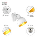 <p>Rivoli Esmeree – бра, настенно-потолочный спот с трендовым металлическим плафоном. Внешняя сторона плафона имеет белое матовое покрытие, внутренняя - покрытие золотого цвета. Настенно-потолочные светильники Esmeree отличаются поворотной конструкцией плафонов, позволяющей индивидуально регулировать направление светового потока каждого плафона.</p>