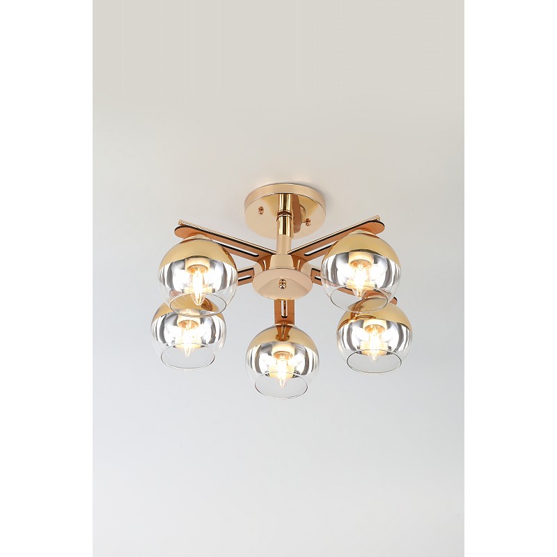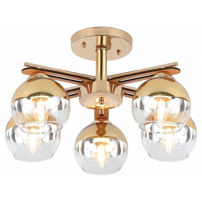 <p>Корпус ярких люстр на потолок Rivoli Zella отличается гармоничным сочетанием благородного золотого окрашивания металла и уютных деревянных вставок приятного тёплого оттенка. Эти современные люстры стоит купить для помещений с невысокими потолками благодаря небольшим габаритам арматуры и эргономичным плафонам круглой формы.</p><p>Круглые стеклянные плафоны люстры Zella металлизированы золотым цветом в тон корпусу. Лаконичность и простые линии арматуры делают эту красивую люстру универсальной для любого интерьера. Её стоит купить в городскую квартиру, маленькую студию, на дачу, в загородный дом. Уютный свет, который создают люстры потолочные Zella итальянского бренда Rivoli, комфортен для быта и отдыха. Подходят лампы распространённого цоколя Е27 и оптимальной мощности 40 Вт. </p><p>Если вы ищете недорогую, но качественную люстру в гостиную, спальню, столовую, на кухню, обратите внимание на этот красивый вариант с 5 лампами (арт. 9064-305). Rivo