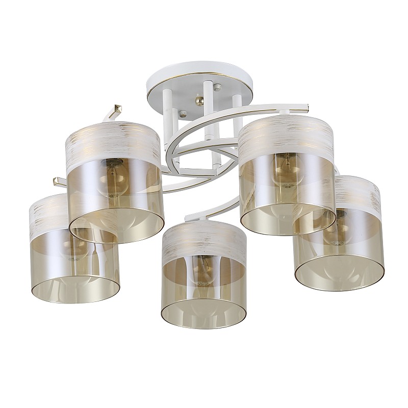 <p>Rivoli Constancia (арт. 9081-305) - аккуратная светлая люстра в гостиную. Выполнена в стиле модерн, однако отлично подходит для интерьеров в скандинавском стиле, в стилях прованс, кантри. Металлический корпус люстры имеет красивое окрашивание в белом и золотом цветах. Техника декоративного состаривания создает в доме уютное спокойное настроение. Люстры потолочные Conctancia от итальянских дизайнеров изготовлены из качественных и прочных материалов. Стеклянные плафоны мягко тонированы в золотистый оттенок и приятно рассеивают свет. Такие люстры не только украшают ваш потолок, но и формируют комфортное для глаз освещение. Приятный дизайнерский бонус белый ободок в верхней части каждого плафона.</p><p>Освещаемая площадь этой люстры с 5 плафонами - 15 м². Подходят лампы Е27 40 Вт, в том числе экономичные светодиодные аналоги. Размер люстры - 500*500*260 мм. Вы оцените ее доступную цену и стильный внешний вид. Коллекция расширена люстрой под 3 лампы - арт. 9