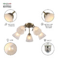 <p>Люстра на потолок Rivoli Olivia (арт. 9088-305) в цвете античная бронза декорирована металлическими веточками с листочками. Пять матовых плафонов создают в комнате комфортное освещение и уют. Дизайн люстры разработан итальянским брендом Rivoli. Эта люстра в гостиную изготовлена из качественного металла со стойким гальваническим покрытием. Стеклянные плафоны люстры - белые, с оригинальной формой и текстурой. Освещаемая площадь - 15 м². Применяйте с пятью лампочками Е27 мощностью 40 Вт. Вы получите ровный равномерный свет с минимальным количеством бликов. Люстры потолочные Rivoli Olivia красивы и практичны.</p><p>Такие люстры часто покупают в спальню. Их приятное оформление с цветочными мотивами дарит положительные эмоции. Люстры отлично вписываются в любой интерьер. Если вы сделали ремонт или хотите обновить помещение - спешите купить люстры европейского дизайна по доступной цене. Коллекцию дополняет модель под 3 лампы (арт. 9088-303) - отличный вариант лю