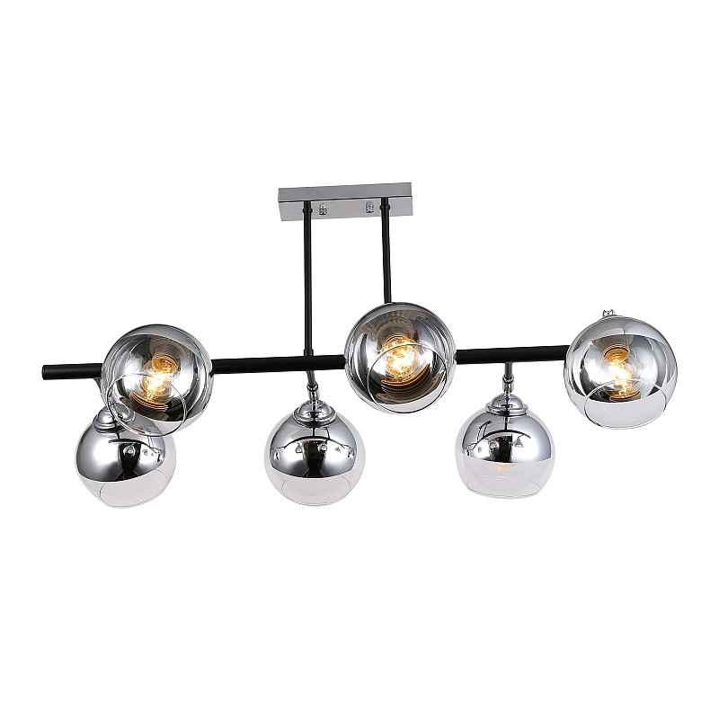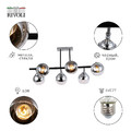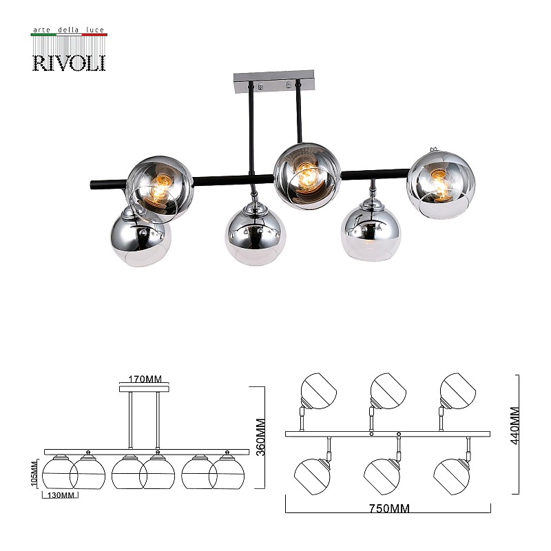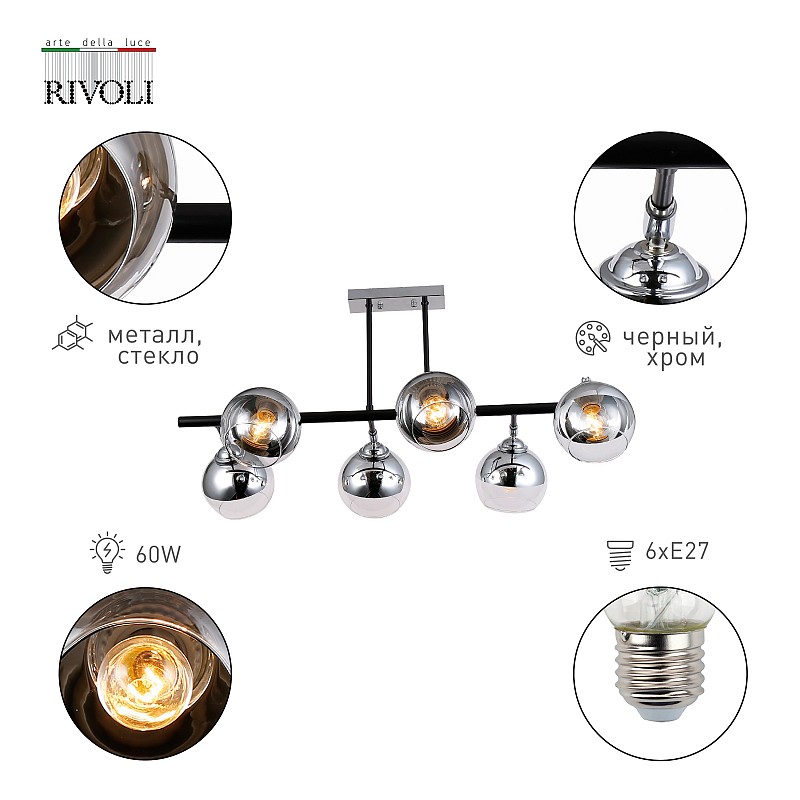 <p>В коллекцию Rivoli Eduarda входят люстры потолочные с 4 плафонами (арт. 9100-304) и люстры потолочные с 6 плафонами (арт. 9100-306). Данная люстра на потолок используется с 6 источниками света Е27 60 Вт. Площадь освещения люстры Eduarda - 18 м². Габариты люстры - 750*440*360 мм. Минималистичная арматура со стойким гальваническим покрытием трендовых цветов - черный и хром.</p>