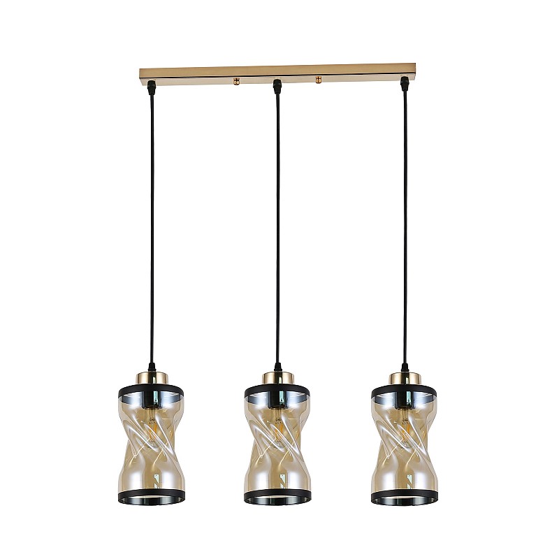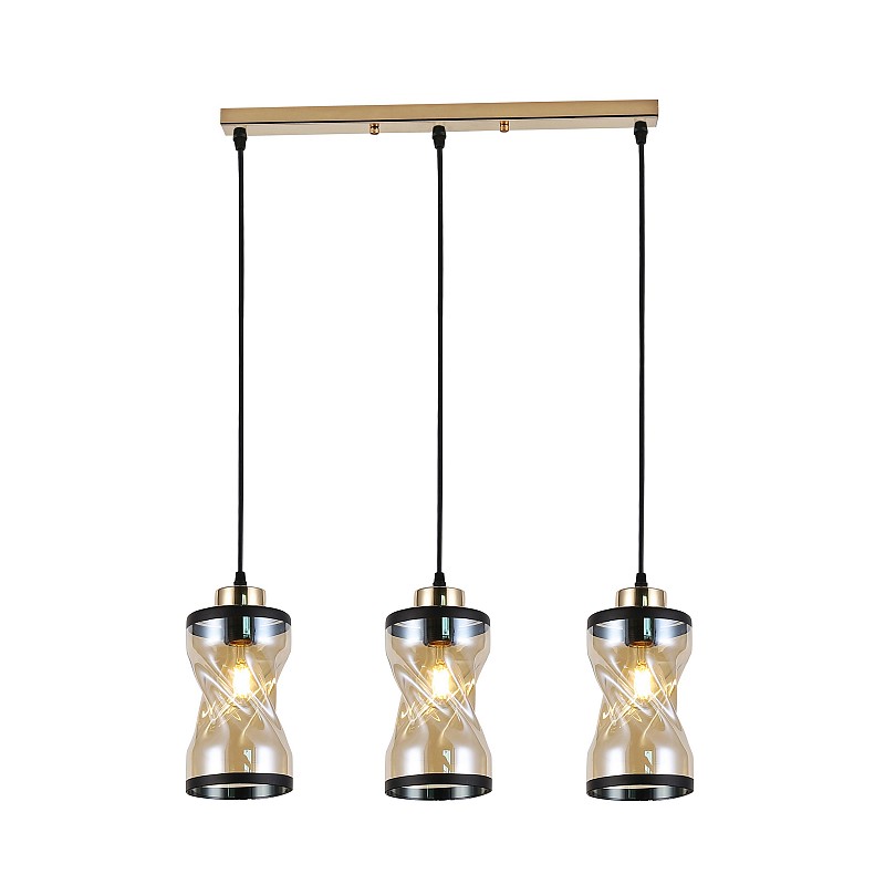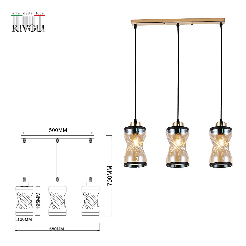 <p>Выразительный подвесной светильник Rivoli Monique (арт. 9105-203) с 3 стеклянными фигурными плафонами. Стеклянные плафоны с теплым тонированием и контрастным черным ободком. Такие подвесные светильники - идеальное решение для стилей модерн, классика, лофт, лофт-кантри. Высоту потолочных подвесных светильников Monique легко отрегулировать под ваш потолок при монтаже. Эти подвесные светильники на тросах хороши для дополнительной подсветки либо в качестве люстры для небольшой комнаты. Площадь освещения такой люстры - до 9 м².</p>