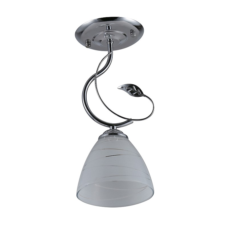 <p>Rivoli Kathleen (арт. 9110-201) - потолочный светильник в цветочном дизайне. Этот красивый светильник подходит для любых потолков, в том числе для натяжных. Изготовлен из качественного металла со стойким хромированным покрытием. Плафон светильника потолочного Kathleen выполнен из декоративного матового стекла с нежными рисунком в виде прозрачных линий. Выполненный в сдержанной бело-серебристой цветовой гамме, этот светильник на потолок хорошо впишется в ваш интерьер, украсит квартиру или загородный дом. Флористический дизайн актуален во все времена. Светильник потолочный украшен тонкой металлической веточкой с листочком. </p>