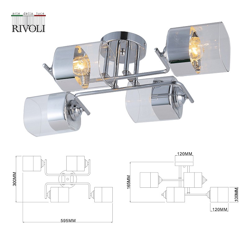 <p>Rivoli Alana (арт. 9113-304) - красивая стильная люстра на потолок с хромированной арматурой, дымчатым стеклом и современным расположением плафонов. Дизайн люстры создан итальянским брендом Rivoli. Люстра в гостиную Alana изготовлена из высококачественных материалов, имеет стойкое покрытие корпуса. Плафоны с легким дымчатым тонированием эффектно выглядят и отлично рассеивают свет, устраняя блики. Количество плафонов - 4, что отлично подходит для освещения площади до 12 м².</p>