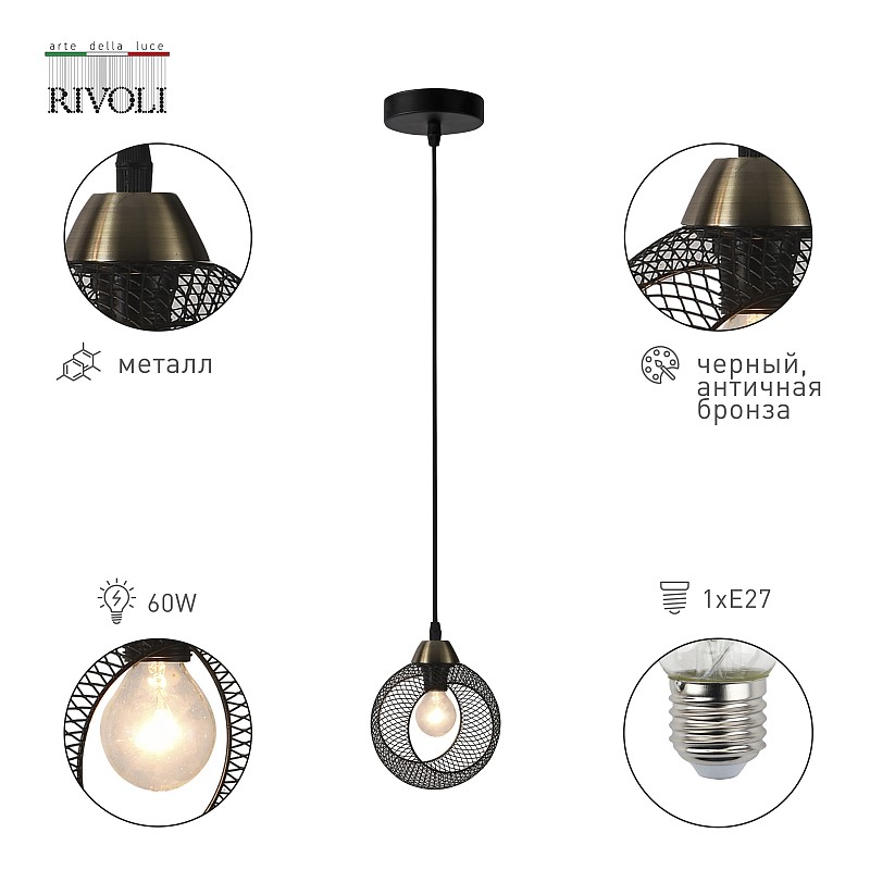 <p>Подвесные светильники Rivoli Lilia имеют патрон Е27, применяются с лампами мощностью 60 Вт. Черный подвесной светильник из металла впишется в интерьер кухни, столовой, коридора. Такие подвесные светильники стоит заказать для создания особой атмосферы в кафе. Данный светильник подвесной хорошо сочетается с ретро-лампочками.</p>
