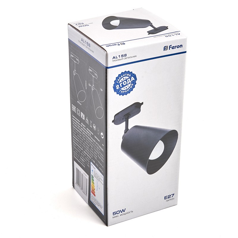 AL158 светильник трековый под лампу E27, черный, 4627153188865