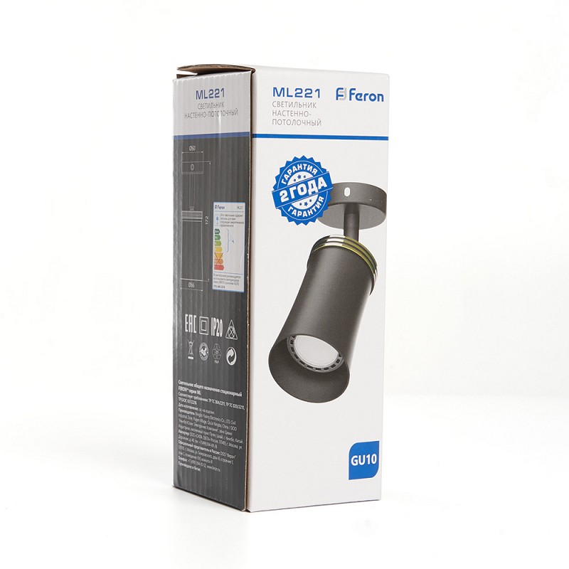 Cветильник настенно-потолочный под лампу GU10, черный ML221, 4627175445908