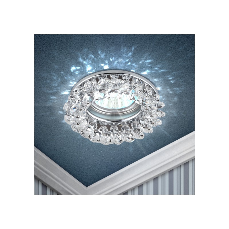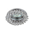 <p>Встраиваемый светильник DK16 CH/WH круглый с мелкими хрусталиками станет эффектным решением для любого помещения: его можно разместить в спальне, в детской или на кухне. Светильник подходят как для базового освещения, так и для создания акцентов в определенных зонах комнаты. Благодаря скрытой части корпуса светильники можно встраивать в потолок или стены, создавая разный дизайн помещений. Встраиваемый светильник ЭРА с приятным дизайном подойдет для комнат с разным интерьером: от лофта до модерна, классицизма или минимализма. При помощи точечных светильников можно освещать только те участки помещения, которыми вы пользуетесь в данный момент, не затрачивая лишнюю элеткроэнергию. Максимальная мощность лампы составляет 50 Вт. Корпус встраиваемого светильника изготовлен из нержавеющей стали. Диаметр отверстия, требуемого для установки светильника составляет 65 миллиметров, а диаметр самого светильника – 90 миллиметров. Цоколь под лампу GU5.3