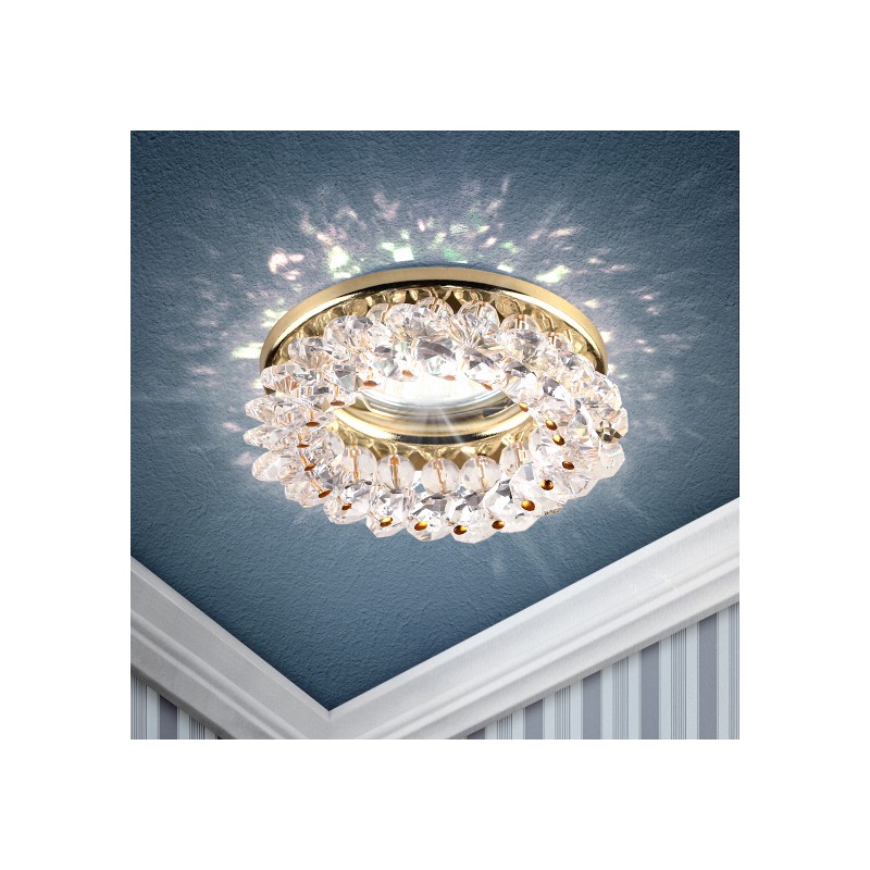 <p>Встраиваемый светильник DK16 GD/WH круглый с мелкими хрусталиками станет превосходным решением для любого помещения: его можно разместить в спальне, в детской или на кухне. Светильник можно использовать как в качестве базового освещения, так и для создания акцентов в определенных зонах комнаты. Благодаря скрытой части корпуса светильники можно встраивать в потолок или стены, создавая разный дизайн помещений. Встраиваемый светильник ЭРА с приятным дизайном подойдет для помещений с разным интерьером: от минимализма до хай-тека, прованса или скандинавского стиля. При помощи точечных светильников можно освещать только те участки помещения, которыми вы пользуетесь в данный момент, не затрачивая лишнюю элеткроэнергию. Максимальная мощность лампы – 50 Вт. Корпус встраиваемого светильника изготовлен из нержавеющей стали. Диаметр отверстия, требуемого для установки светильника составляет 65 мм, а диаметр самого светильника – 90 мм. Цоколь под лампу GU5.3 в комплект