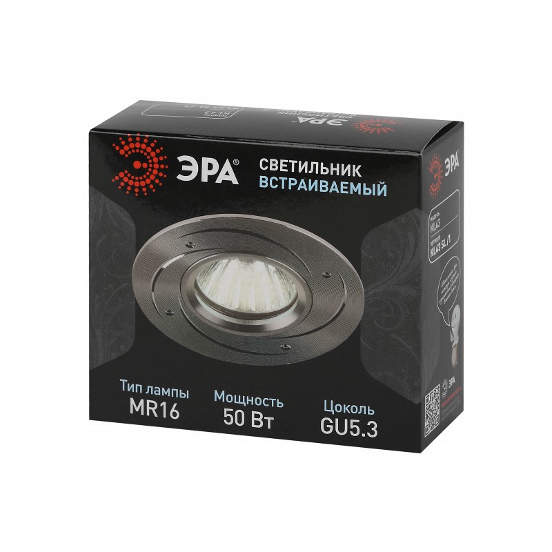 <p>Светильник встраиваемый KL43 SL /1 - замечательное решение для любой комнаты в вашем доме! Точечные светильники можно использовать как в качестве основного освещения, так и для создания акцентов в определенных зонах комнаты. Благодаря скрытой части корпуса светильники можно встраивать не только в потолок, но и в стены, создавая разный стиль помещений. Светильник ЭРА с приятным дизайном подойдет для комнат с разным интерьером: от лофта до модерна, классицизма или минимализма. При помощи точечных светильников можно освещать только те участки помещения, которыми вы пользуетесь в данный момент, не затрачивая лишнюю элеткроэнергию. Максимальная мощность лампы составляет 50 Вт. Корпус встраиваемого светильника изготовлен из металла, что делает его особенно удобным и надежным в использовании. Диаметр отверстия, требуемого для установки светильника составляет 60 миллиметров, а диаметр самого светильника – 95 миллиметров. Цоколь под лампу GU5.3