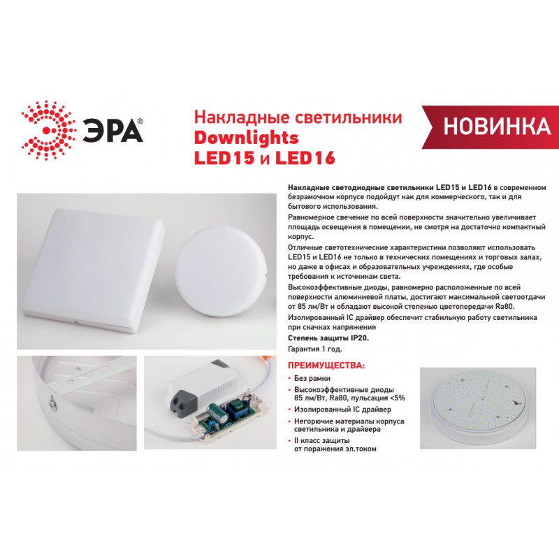 LED 16-18-6K Светильник светодиодный ЭРА LED 16-18-6K накладной квадратный 18Вт 6500К, 5055398629741