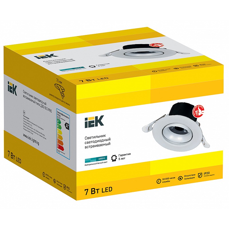 LIGHTING PRO Светильник светодиодный поворотный ДВО 1812 7Вт 4000К IP20 круг белый IEK, 4610084281781