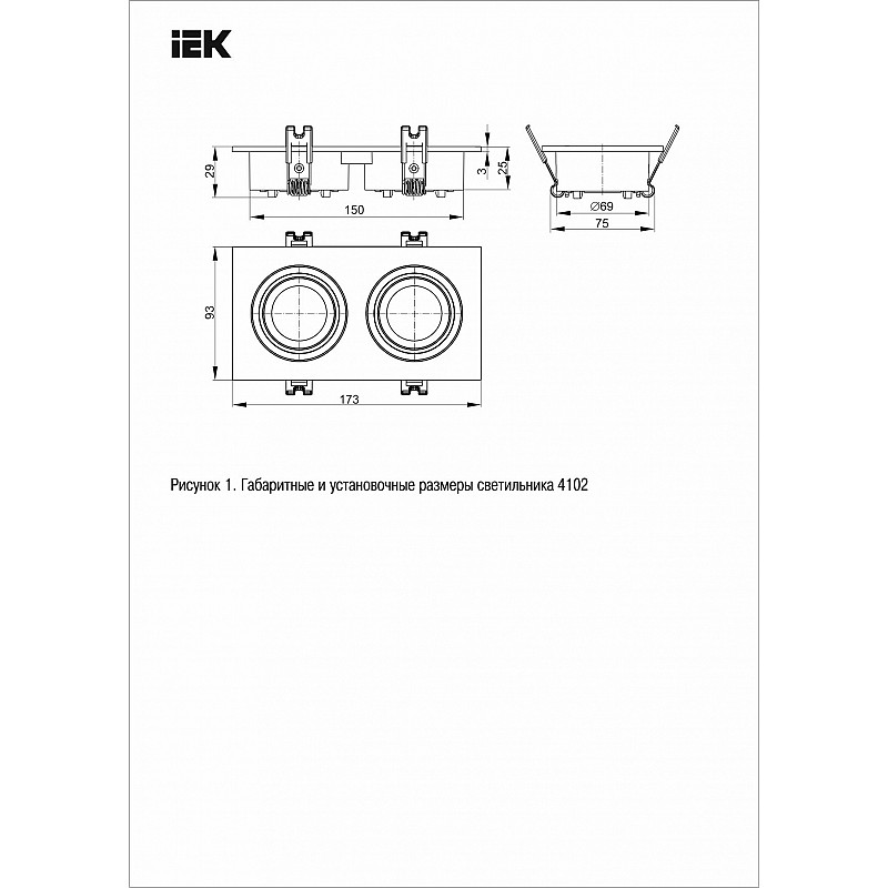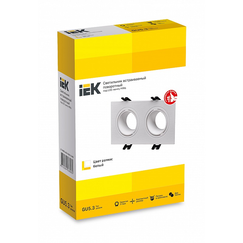 LIGHTING Светильник 4102 встраиваемый под лампу 2хMR16 квадрат пластиковый белый IEK, 4610084538960