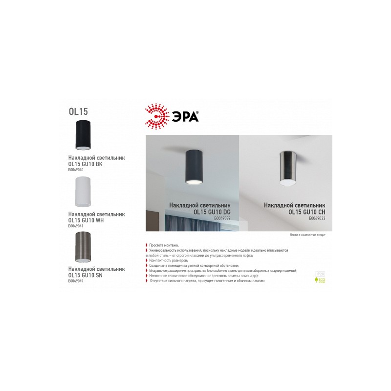 OL15 GU10 SN OL15 GU10 SN Подсветка ЭРА Накладные, под GU10