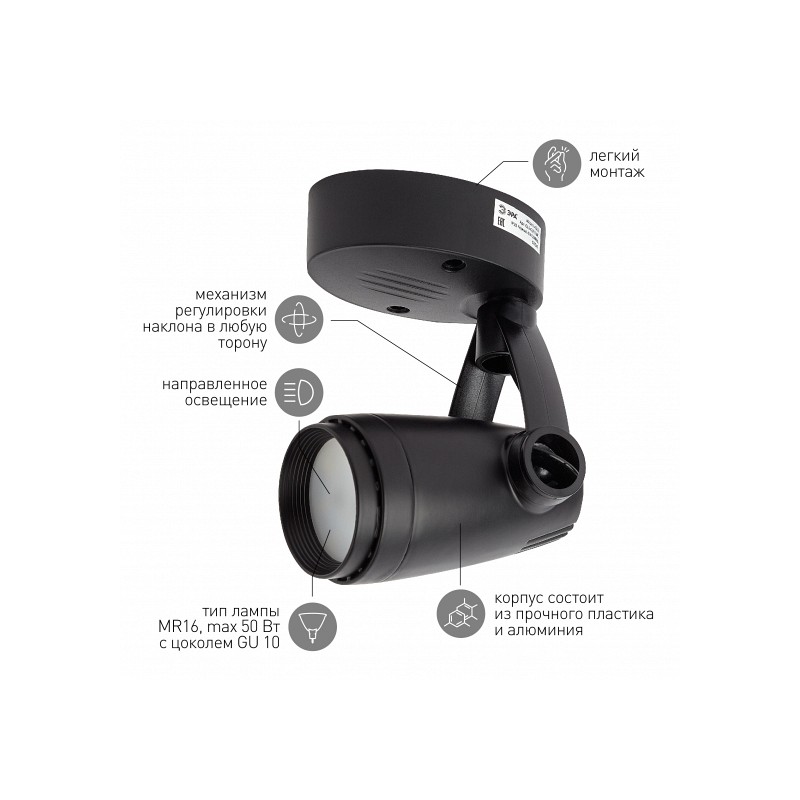 OL5 GU10 BK OL5 GU10 BK Светильник ЭРА Накладной, черный