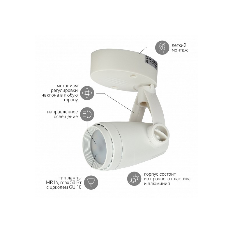 <p>Светильник OL5 GU10 WH направленного света подчёркивает структуру материалов стен. Создает интересный световой рисунок. Можно использовать как по отдельности, так создавать целые системы.Светильник имеет механизм регулировки наклона в любую сторону. Цоколь для источника света GU10, напряжение питания 220В ~50/60Гц, материал металл + пластик, цвет светильника белый, размер D55*H131 мм, максимальная мощность лампы 50 Вт, степень защиты IP20</p>