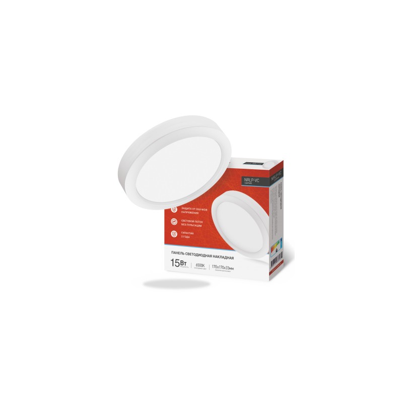 Панель светодиодная накладная круглая NRLP-VC 15Вт 230В 6500К 1200Лм 170мм белая IP40 IN HOME, 4690612038728
