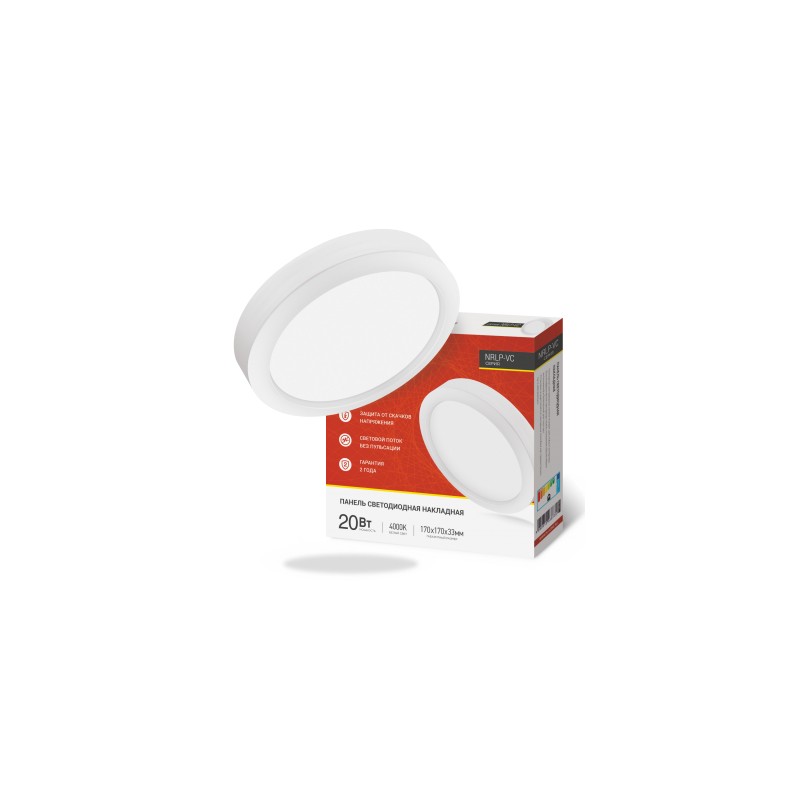Панель светодиодная накладная круглая NRLP-VC 20Вт 230В 4000К 1600Лм 170мм белая IP40 IN HOME, 4690612038735