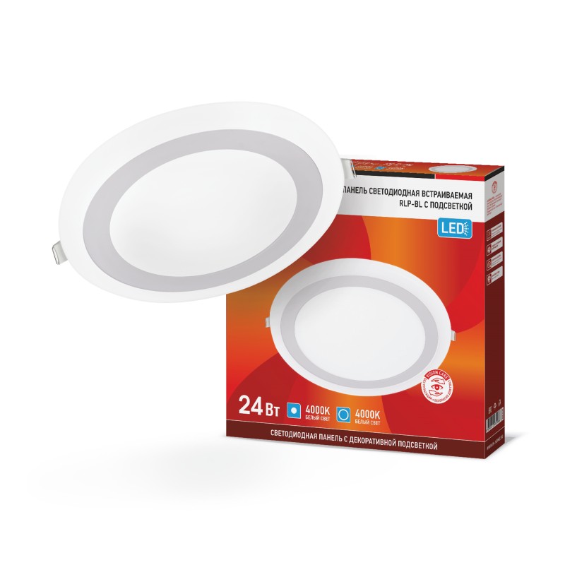 Панель светодиодная встраиваемая круглая RLP-BL 24Вт 230В 4000К 1440Лм 245мм с подсветкой белая IP20 IN HOME