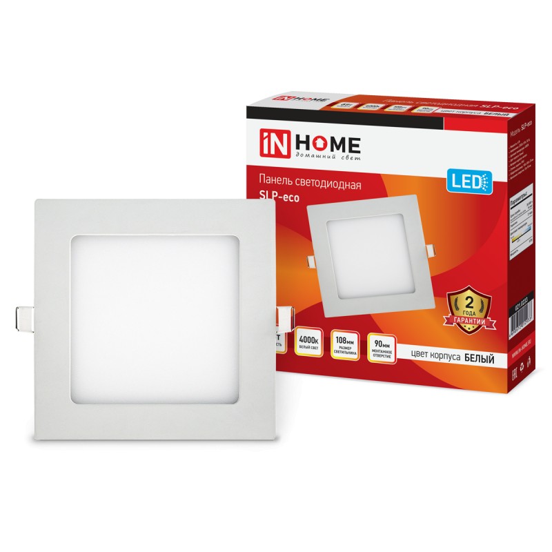 Панель светодиодная встраиваемая квадратная SLP 6Вт 230В 4000К 420Лм 117мм белая IP40 IN HOME, 4690612012933