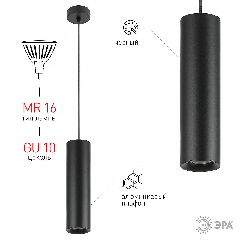 PL1 GU10 BK 300 PL1 GU10 BK 300 Подсветка ЭРА подвесной, GU10, D80*300мм, черный, 5056306016660