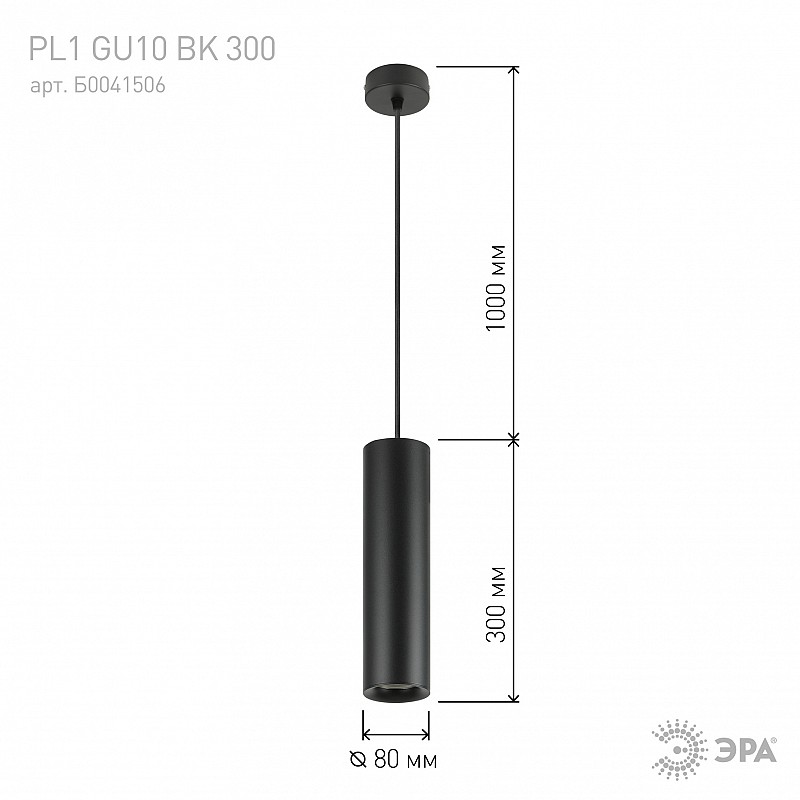 PL1 GU10 BK 300 PL1 GU10 BK 300 Подсветка ЭРА подвесной, GU10, D80*300мм, черный