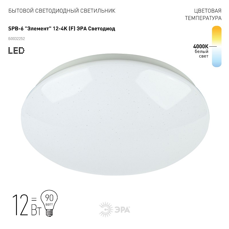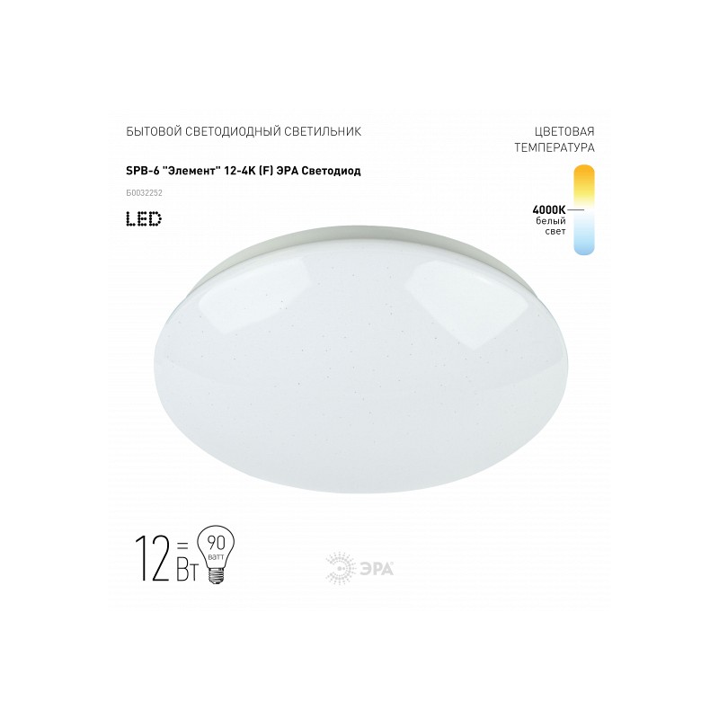 Стильный потолочный светильник SPB-6 "Элемент" от бренда ЭРА добавит стиля и удобства Вашему помещению! Светодиодная люстра имеет стандартные габариты 263х86мм, что позволит ей гармонично вписаться в любое дизайнерское решение.<br/><br/>Люстра оснащена светодиодом с нейтральным белым свечением. Кроме того, за счет равномерного светового потока и рассеивателю из акрила Ваши глаза не будут уставать. Цветовая температура 4000 К.<br/><br/>Главным преимуществом LED светильника является наличие алюминиевого основания. Оно обеспечивает хороший теплоотвод, что увеличивает срок эксплуатации.<br/><br/>Неповторимый минималистичный корпус плафона освежит интерьер спальни, прихожей или гостиной. Слегка выпуклая форма придает модели динамики.<br/><br/>Мощность 12 Вт и срок службы 30 000 часов подарят беспрерывное и долгое использование светодиодной люстры. Вы сможете создать уютную атмосферу! Покупайте потолочный светильник SPB-6 "Элемент" и воплощайте свои мечты в реальность!<br/><br/>