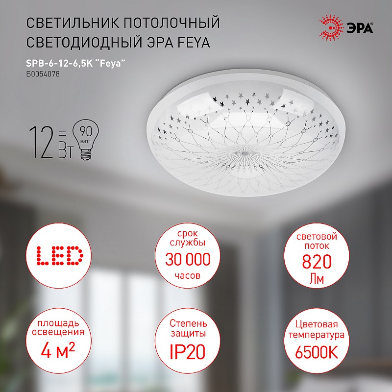 <p>Светодиодный потолочный светильник SPB-6 "Фея" от компании ЭРА идеальный вариант для освещения Вашего пространства! Ее размеры позволяют гармонично разместить в любом помещении.<br />