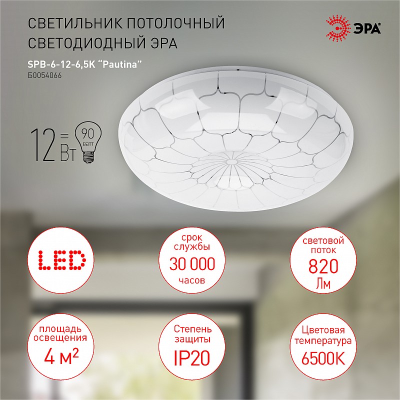 <p>Стильный потолочный светильник SPB-6 Pautina от бренда ЭРА добавит стиля и удобства Вашему помещению! Светодиодная люстра гармонично впишется в любое дизайнерское решение.<br />Люстра оснащена светодиодом с нейтральным белым свечением. Кроме того, за счет равномерного светового потока и рассеивателю из акрила Ваши глаза не будут уставать. В совокупности с цветовой температурой в 6500 К создается приятное белое свечение, защищающее глаза..<br />Главным преимуществом LED светильника является наличие алюминиевого основания. Оно обеспечивает хороший теплоотвод, что увеличивает срок эксплуатации.<br />Неповторимый минималистичный корпус плафона освежит интерьер спальни, прихожей или гостиной. Слегка выпуклая форма придает модели динамики.<br />Срок службы 30 000 часов подарят беспрерывное и долгое использование светодиодной люстры. Вы сможете создать уютную атмосферу! Покупайте потолочный светильник SPB-6 Pautina и воплощайте свои мечты в реальность!</p