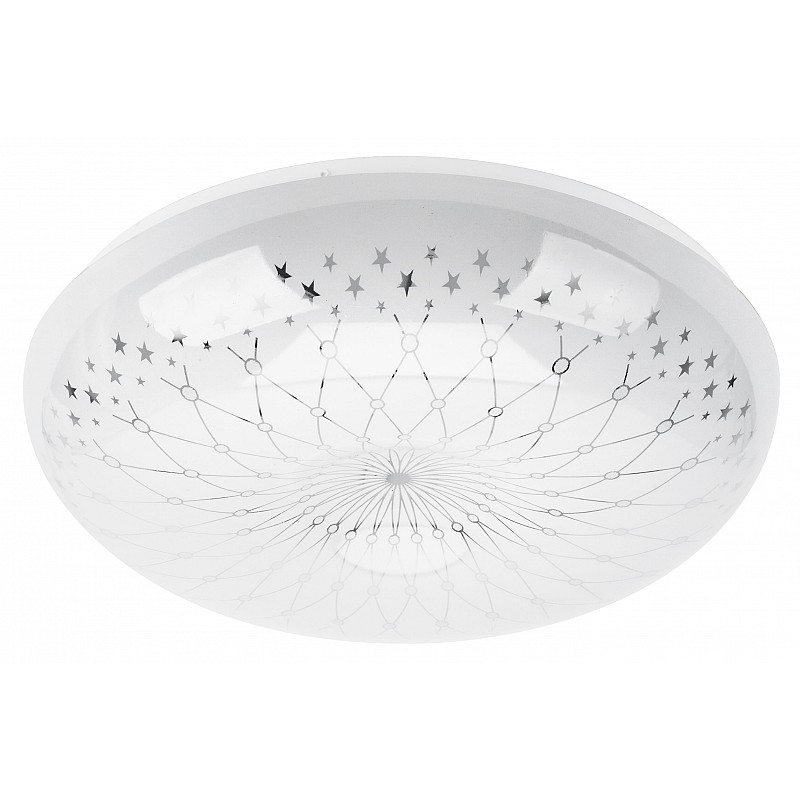 Восхитительный дизайн плафона создаст приятную обстановку в Вашем доме. Узор из переплетающихся линий прекрасно сочетается с круглым плоским корпусом. Крохотные звезды, разбросанные по окружности рассеивателя, придают светильнику динамики. Такая LED люстра идеальна для оформления света детской, гостиной или спальне.<br />
