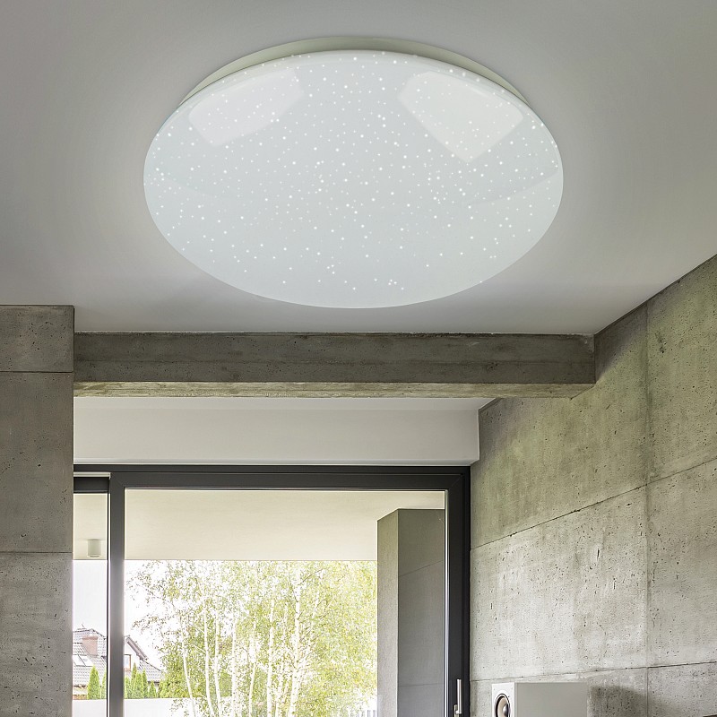 Люстра оснащена светодиодом с нейтральным белым свечением. Кроме того, за счет равномерного светового потока и рассеивателю из акрила Ваши глаза не будут уставать. Цветовая температура 4000 К. Светильник оснащен режимом "ночное небо".</p>
