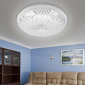 Восхитительный дизайн плафона создаст приятную обстановку в Вашем доме. Узор из переплетающихся линий прекрасно сочетается с круглым плоским корпусом. Крохотные звезды, разбросанные по окружности рассеивателя, придают светильнику динамики. Такая LED люстра идеальна для оформления света детской, гостиной или спальне.<br />