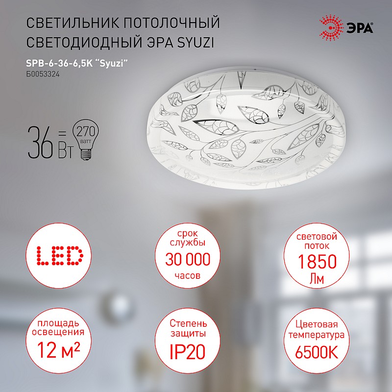 Мощность в 36 Вт и срок службы в 30 000 часов позволят использовать электросветильник SPB-6 "Сюзи" долгое время! Примите верное решение и купите люстру от бренда ЭРА!</p>