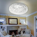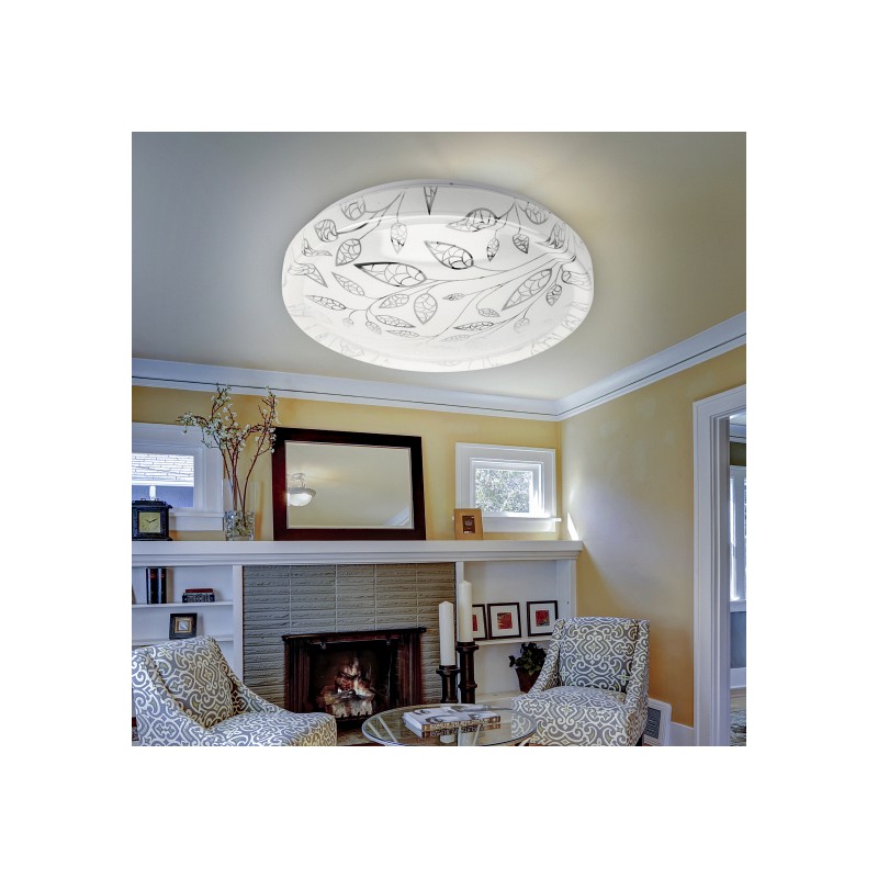 Плафон LED люстры декорирован изящным узором. Нежные ветки с лепестками гармонично смотрятся на круглом плоском корпусе. Такой светильник прекрасно подойдет для оформления гостиной, коридора, спальни или детской.<br />